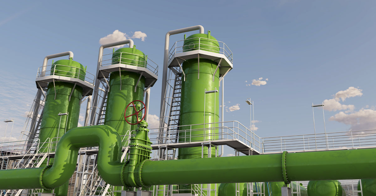 Biogas reactor plant turning organic waste into usable gas and fertilizer.